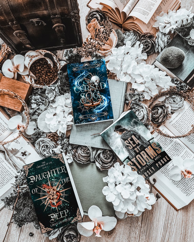 Ahoy, reader! Three epic adventures await on the high seas—The Cursed Soul by KC Smith, Daughter of the Deep by Lina C. Amarego, and Sea of Storms by Lindsey Pogue. Answer these questions to find out which one you should dive into first! 🌊✨
